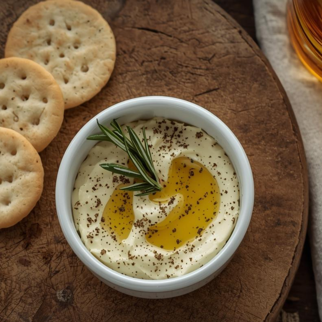 Whipped Feta: In a small food processor add 1 block of feta, crumbled + 4 oz. of cream cheese, softened + 1 Tbs olive oil. Pulse until creamy and light. Add more olive oil if needed. Transfer to a serving bowl, leaving a well in the middle. Drizzle a good amount of hot honey into the well and garnish with fresh minced rosemary, a pinch of flake salt, and fresh cracked pepper. Serve with crackers.